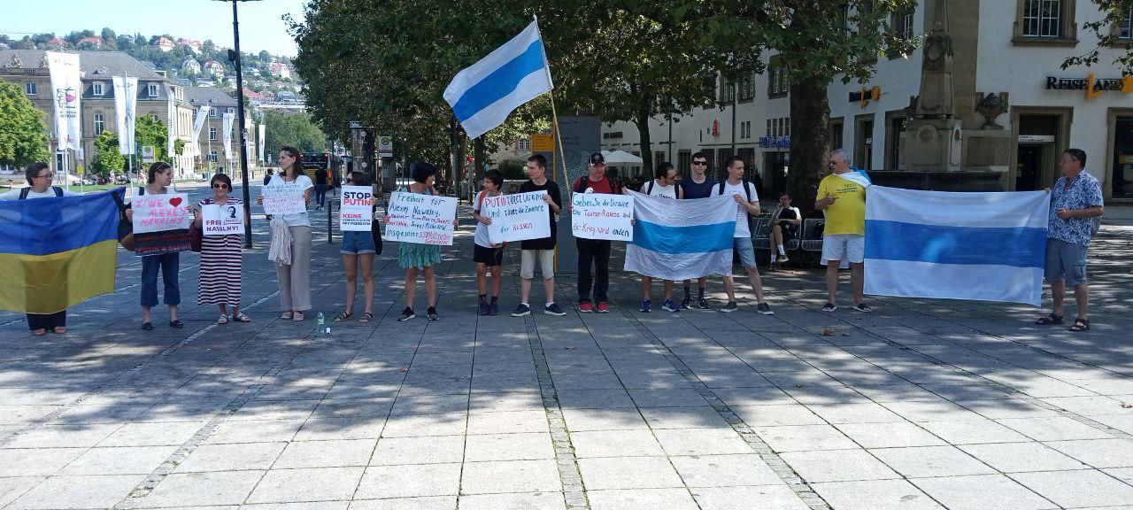 В Штутгарте организатором акции на Kleiner Schlossplatz 1 стал Михаил Долиев. В митинге участвовали около 30 активистов – с плакатами и флагами. На плакатах было написано: